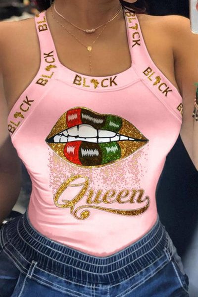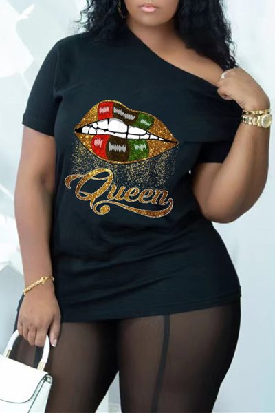 Sexy Print Split Joint Asymmetrical Zipper Zipper Collar Tops