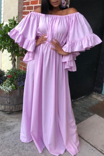 Fashion Casual Solid Split Joint Off the Shoulder Long Dress