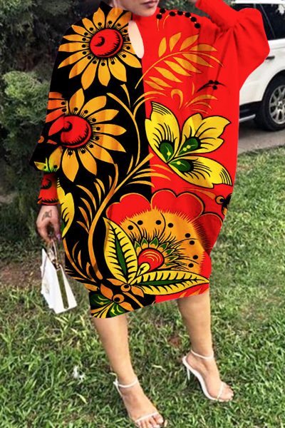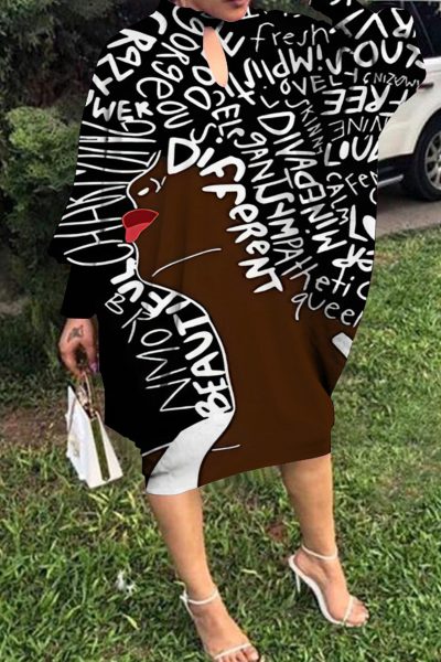 Fashion Casual Print Hollowed Out O Neck Long Sleeve Dresses