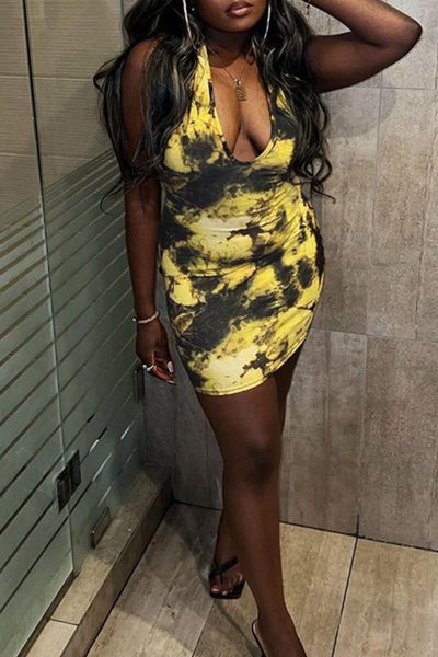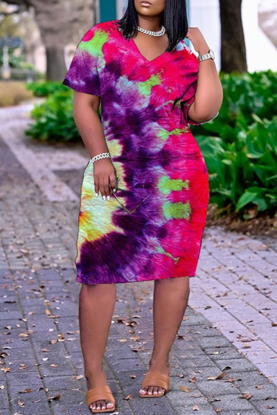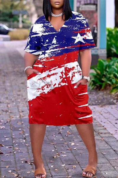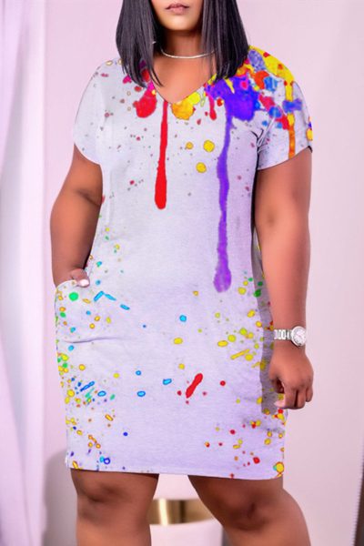 Fashion Casual Print Basic V Neck Short Sleeve Dress Dresses