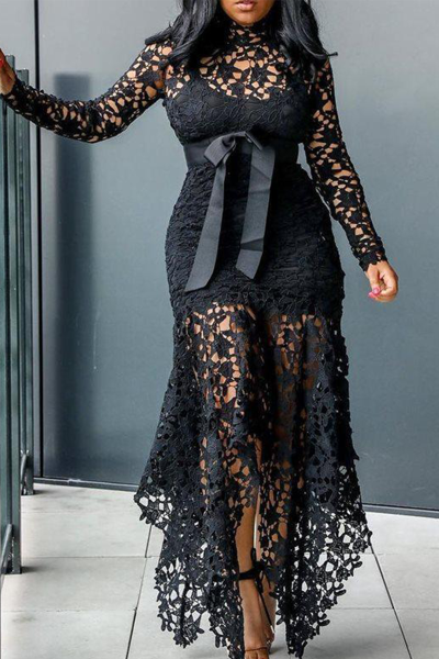 Sexy Solid Lace O Neck Irregular Dress Dresses