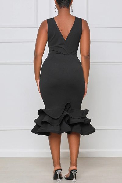 Fashion Sexy Solid Split Joint V Neck Evening Dress