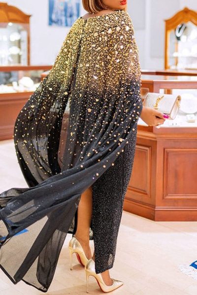 Sexy Elegant Split Joint Asymmetrical Hot Drill O Neck One Step Skirt Dresses(Without Belt)