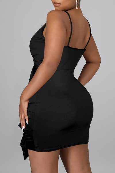 Sexy Solid Split Joint Flounce Spaghetti Strap Sling Dress Dresses