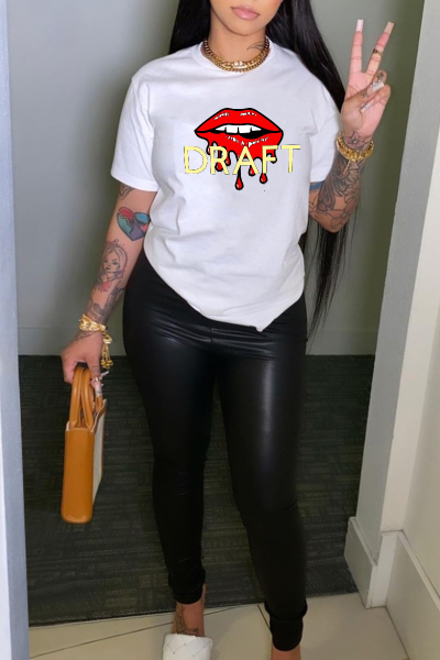 Fashion Street Lips Printed Split Joint Letter O Neck T-Shirts