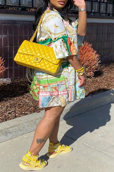 - Tag: Polyester , Casual , Print , Regular , Loose , Mini , Patchwork , Turndown Collar , Full Print , A Line , Half Sleeve , Buckle
