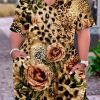 Material Polyester Style Casual Pattern Type Print Element Split Joint Neckline O Neck Silhouette Waist Skirt Sleeve Length Short Sleeve Dresses Length Knee Length Fit Type Straight Type Positioning Print