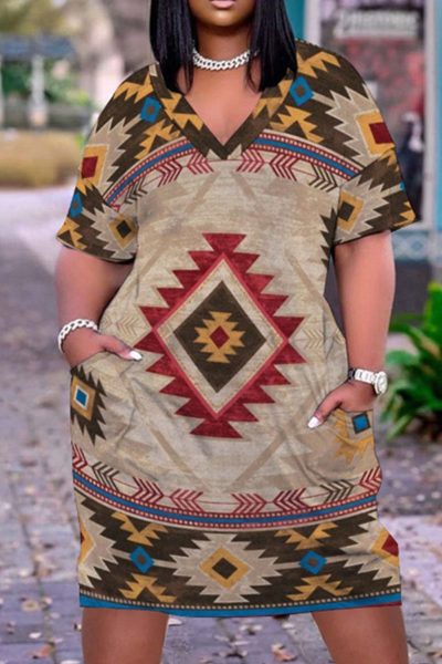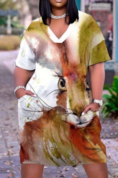 - Product Name: Casual Print Split Joint V Neck Straight Dresses