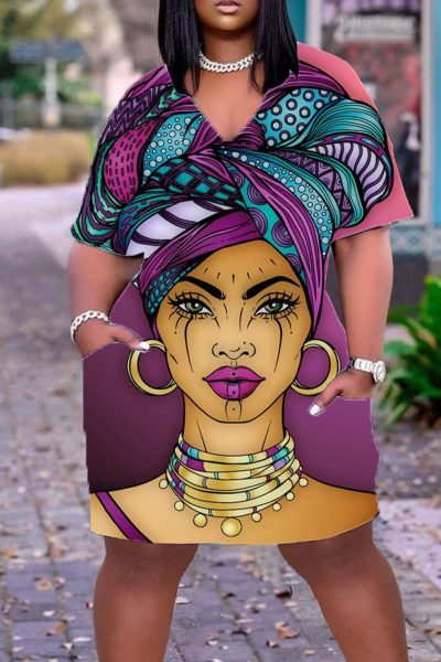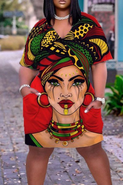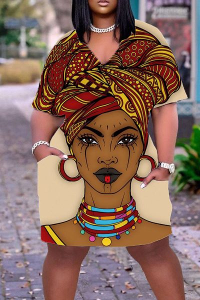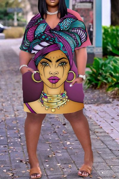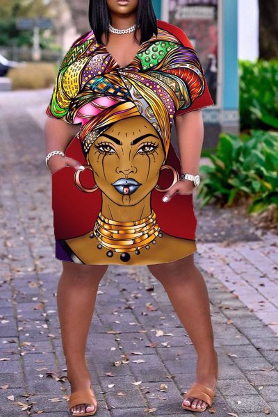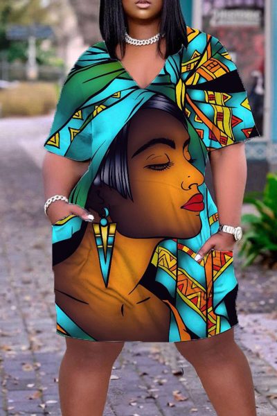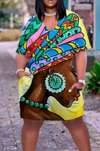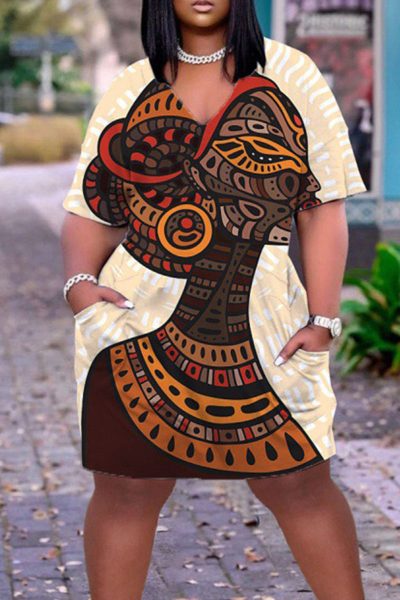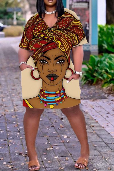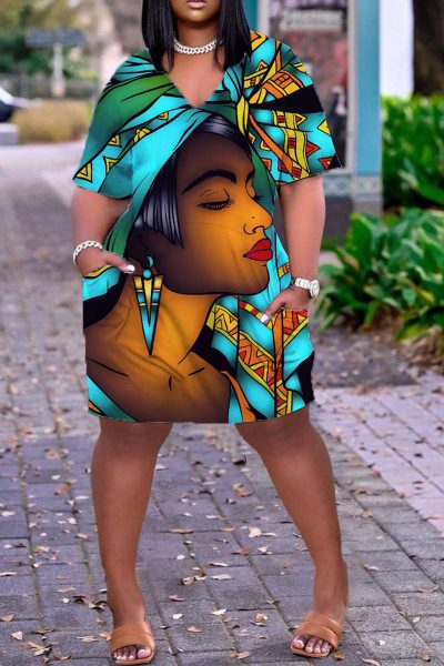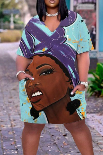 - Product Name: Casual Print Split Joint V Neck Straight Dresses