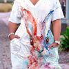 Material Polyester Style Casual Pattern Type Print Element Split Joint Neckline V Neck Silhouette Straight Sleeve Length Short Sleeve Dresses Length Knee Length Fit Type Straight Clothing Length Regular Type Positioning Print inchcmSize(in) Bust Dresses Length Shoulder Width Sleeve Length S 44.9 40.6 7.5 4.7 M 46.9 40.9 7.7 5.1 L 48.8 41.3 7.9 5.5 XL 50.8 41.7 8.1 5.9 2XL 52.8 42.1 8.3 6.3 3XL 54.7 42.5 8.5 6.7 4XL 56.7 42.9 8.7 7.1 5XL 58.7 43.3 8.9 7.5 Size(cm) Bust Dresses Length Shoulder Width Sleeve Length S 114 103 19 12 M 119 104 19.5 13 L 124 105 20 14 XL 129 106 20.5 15 2XL 134 107 21 16 3XL 139 108 21.5 17 4XL 144 109 22 18 5XL 149 110 22.5 19
