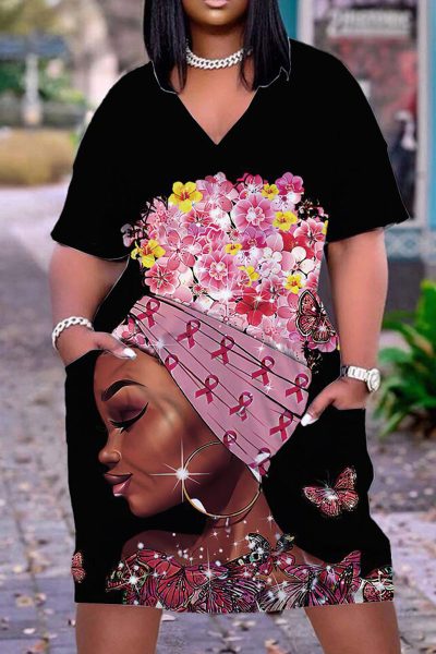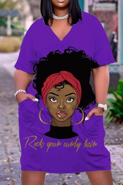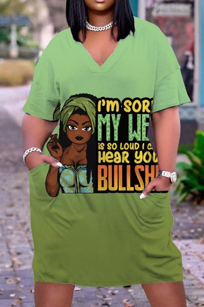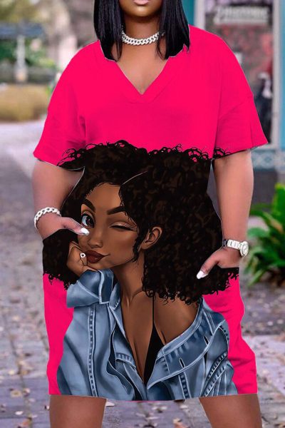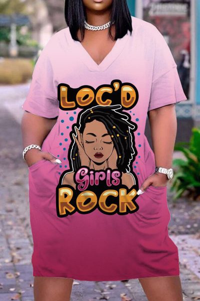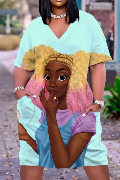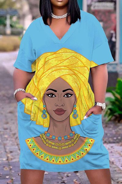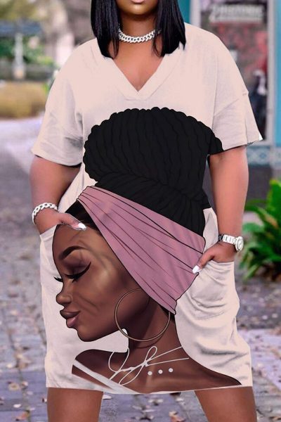 - Product Name: Casual Print Split Joint V Neck Straight Dresses
