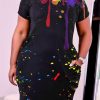 Material Polyester Style Fashion,Casual Pattern Type Letter,Print Element Basic Neckline V Neck Silhouette Short Sleeve Dress Sleeve Style Regular Sleeve Sleeve Length Short Sleeve Dresses Length Knee Length Fit Type Regular Type Positioning Print inchcmSize(in) Bust Waist Hips Dresses Length Sleeve Length S 41.7 35.4 41.7 43.7 5.1 M 43.3 37 43.3 44.1 5.5 L 44.9 38.6 44.9 44.5 5.9 XL 46.5 40.2 46.5 44.9 6.3 2XL 48 41.7 48 45.3 6.7 3XL 49.6 43.3 49.6 45.7 7.1 Size(cm) Bust Waist Hips Dresses Length Sleeve Length S 106 90 106 111 13 M 110 94 110 112 14 L 114 98 114 113 15 XL 118 102 118 114 16 2XL 122 106 122 115 17 3XL 126 110 126 116 18