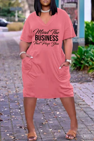 - Product Name: Fashion Casual Letter Print Basic V Neck Short Sleeve Dress
