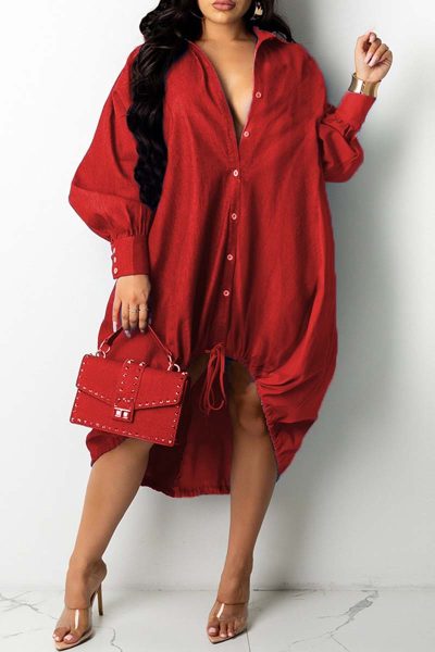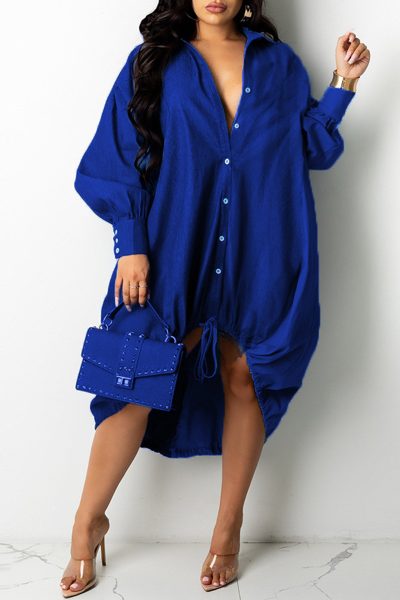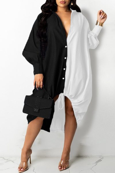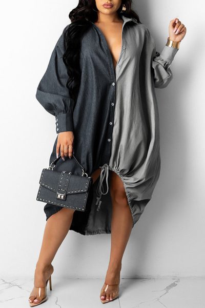 - Product Name: Fashion Casual Patchwork Basic Turndown Collar Long Sleeve Dresses