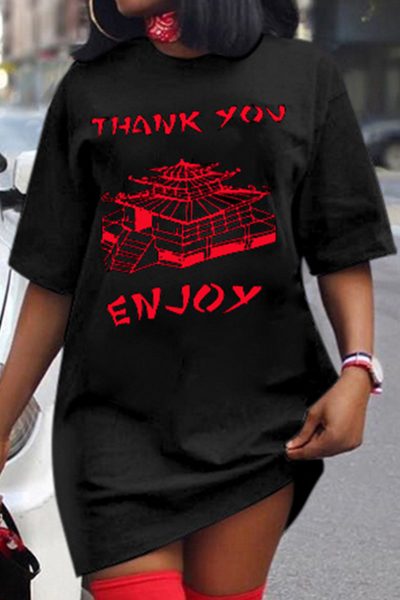 Material Polyester Style Fashion,Casual Pattern Type Print Element Basic Neckline O Neck Silhouette Short Sleeve Dress Sleeve Style Regular Sleeve Sleeve Length Short Sleeve Dresses Length Mini Fit Type Regular Type Positioning Print inchcmSize(in) Bust Hips Dresses Length Shoulder Width Sleeve Length S 39.4 42.5 32.3 19.7 9.3 M 40.9 44.1 33.1 20.5 9.4 L 42.5 45.7 33.9 21.3 9.6 XL 44.1 47.2 34.6 22 9.8 2XL 45.7 48.8 35.4 22.8 10 3XL 47.2 50.4 36.2 23.6 10.2 4XL 48.8 52 37 24.4 10.4 Size(cm) Bust Hips Dresses Length Shoulder Width Sleeve Length S 100 108 82 50 23.5 M 104 112 84 52 24 L 108 116 86 54 24.5 XL 112 120 88 56 25 2XL 116 124 90 58 25.5 3XL 120 128 92 60 26 4XL 124 132 94 62 26.5