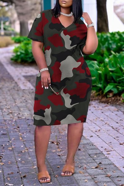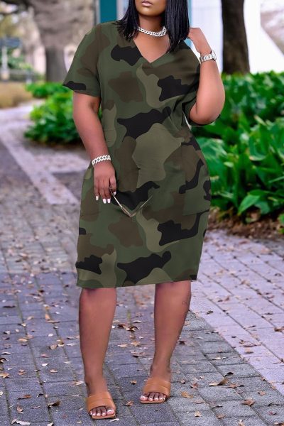 Material Polyester Style Fashion,Casual Pattern Type Print Element Basic Neckline V Neck Silhouette Short Sleeve Dress Sleeve Style Regular Sleeve Sleeve Length Short Sleeve Dresses Length Knee Length Fit Type Regular Type Full Print inchcmSize(in) Bust Waist Hips Dresses Length Sleeve Length S 41.7 35.4 41.7 43.7 5.1 M 43.3 37 43.3 44.1 5.5 L 44.9 38.6 44.9 44.5 5.9 XL 46.5 40.2 46.5 44.9 6.3 2XL 48 41.7 48 45.3 6.7 3XL 49.6 43.3 49.6 45.7 7.1 Size(cm) Bust Waist Hips Dresses Length Sleeve Length S 106 90 106 111 13 M 110 94 110 112 14 L 114 98 114 113 15 XL 118 102 118 114 16 2XL 122 106 122 115 17 3XL 126 110 126 116 18