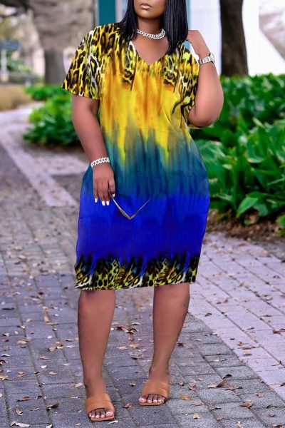- Product Name: Fashion Casual Print Basic V Neck Short Sleeve Dress