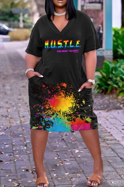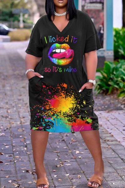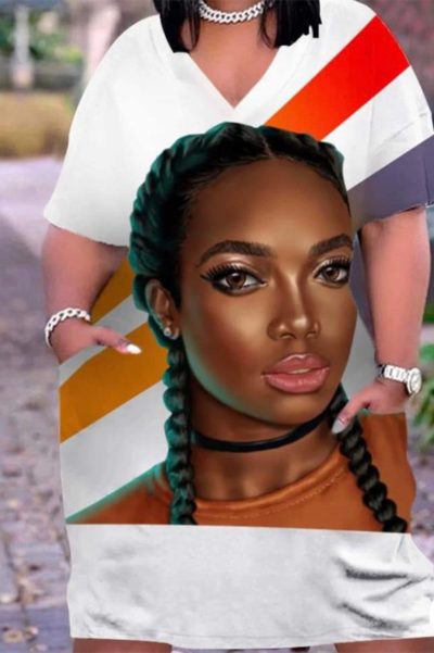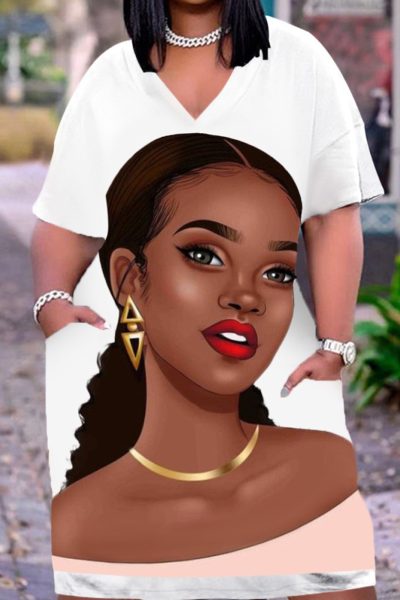 - Product Name: Fashion Casual Print Basic V Neck Short Sleeve Dress