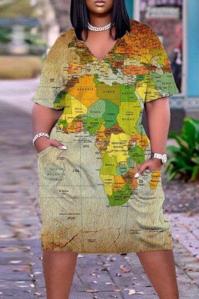 Material Polyester Style Fashion,Casual Pattern Type Print Element Basic Neckline V Neck Silhouette Short Sleeve Dress Sleeve Style Regular Sleeve Sleeve Length Short Sleeve Dresses Length Mid Calf Fit Type Regular Type Positioning Print inchcmSize(in) Bust Dresses Length Sleeve Length S 44.9 40.6 4.7 M 46.9 40.9 5.1 L 48.8 41.3 5.5 XL 50.8 41.7 5.5 2XL 52.8 42.1 5.5 3XL 54.7 42.5 5.9 4XL 56.7 42.9 6.3 5XL 58.7 43.3 6.7 Size(cm) Bust Dresses Length Sleeve Length S 114 103 12 M 119 104 13 L 124 105 14 XL 129 106 14 2XL 134 107 14 3XL 139 108 15 4XL 144 109 16 5XL 149 110 17