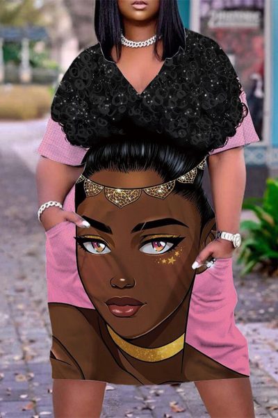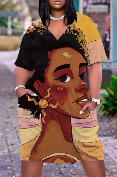 - Product Name: Fashion Casual Print Basic V Neck Short Sleeve Dress