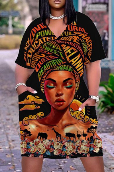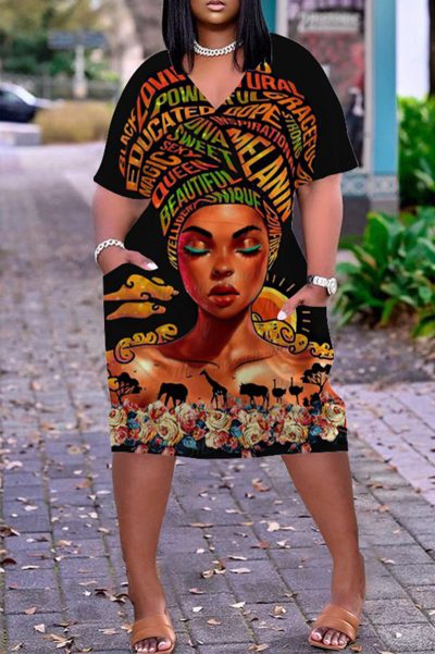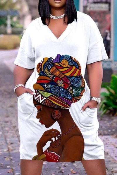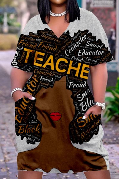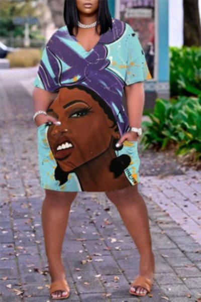 - Product Name: Fashion Casual Print Basic V Neck Short Sleeve Dress