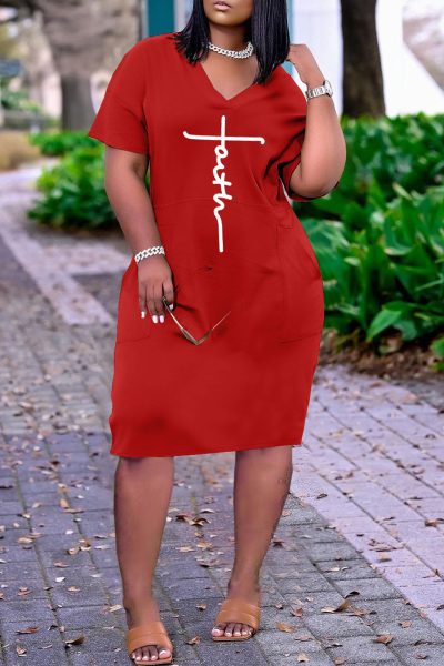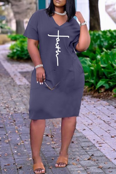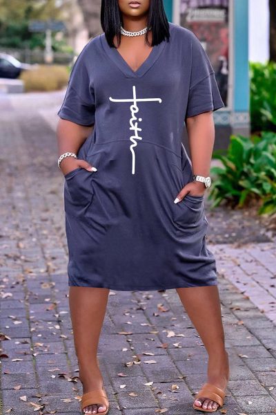 - Product Name: Fashion Casual Print Basic V Neck Short Sleeve Dress