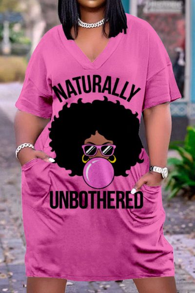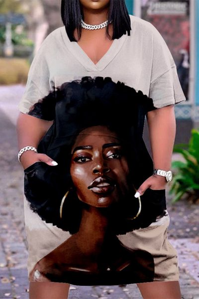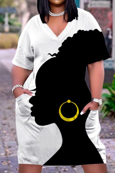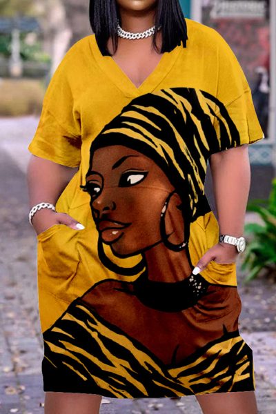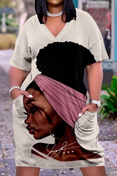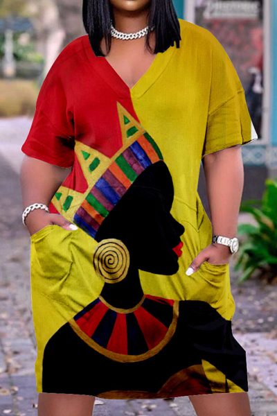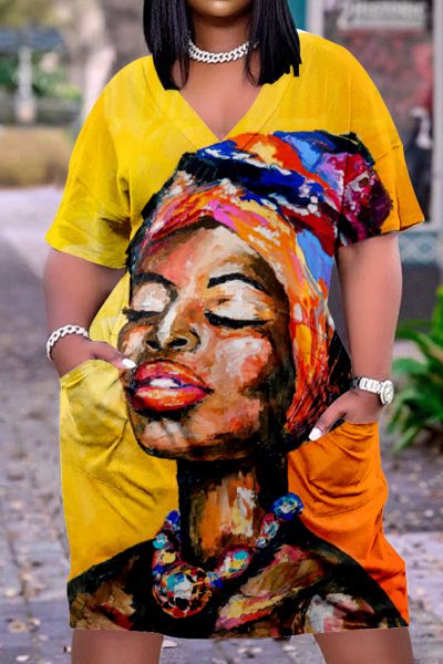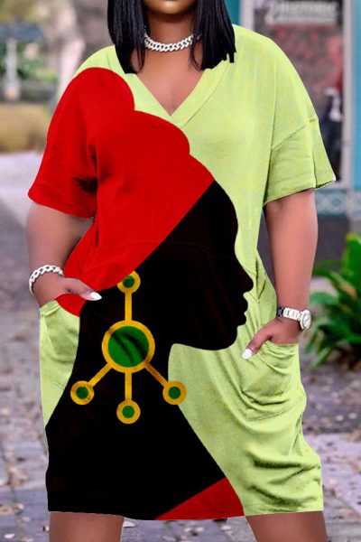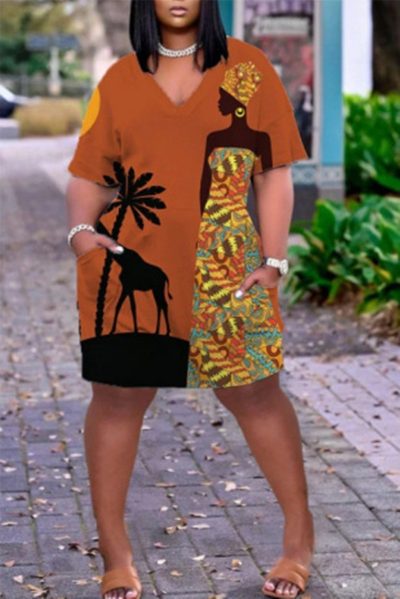 - Product Name: Fashion Casual Print Basic V Neck Short Sleeve Dress