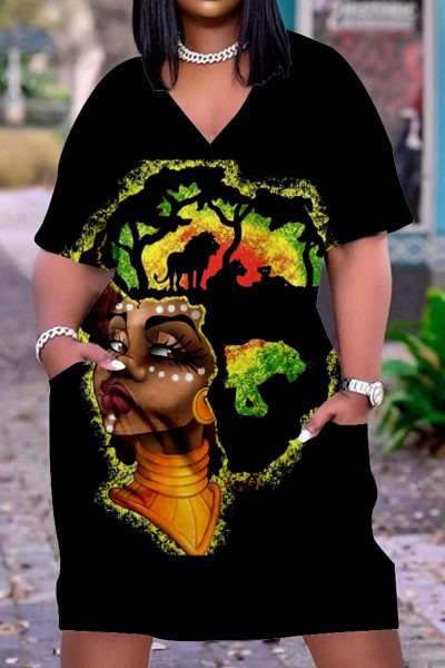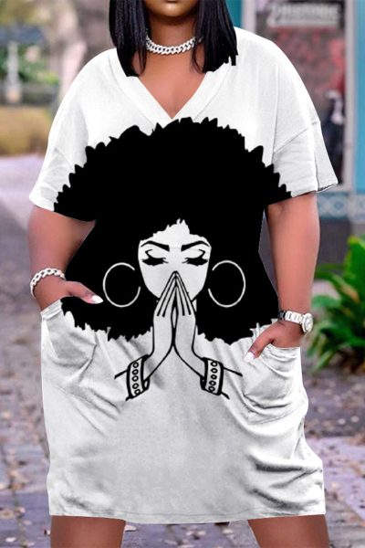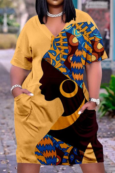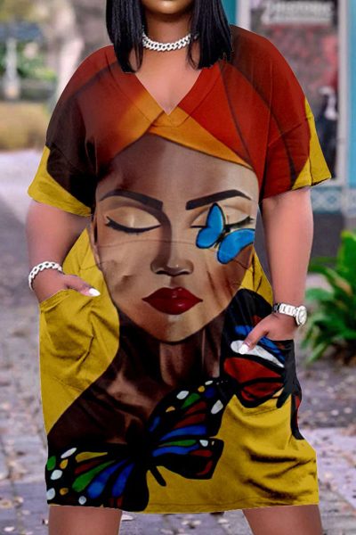 Material Polyester Style Fashion,Casual Pattern Type Print Element Basic Neckline V Neck Silhouette Short Sleeve Dress Sleeve Style Regular Sleeve Sleeve Length Short Sleeve Dresses Length Knee Length Fit Type Regular Type Full Print inchcmSize(in) Bust Dresses Length Shoulder Width Sleeve Length S 44.9 40.6 7.5 4.7 M 46.9 40.9 7.7 5.1 L 48.8 41.3 7.9 5.5 XL 50.8 41.7 8.1 5.5 2XL 52.8 42.1 8.3 5.5 3XL 54.7 42.5 8.7 5.9 4XL 56.7 42.9 9.4 6.3 5XL 58.7 43.3 9.8 6.7 6XL 60.6 43.7 10.2 7.1 Size(cm) Bust Dresses Length Shoulder Width Sleeve Length S 114 103 19 12 M 119 104 19.5 13 L 124 105 20 14 XL 129 106 20.5 14 2XL 134 107 21 14 3XL 139 108 22 15 4XL 144 109 24 16 5XL 149 110 25 17 6XL 154 111 26 18
