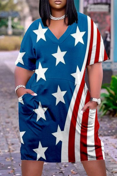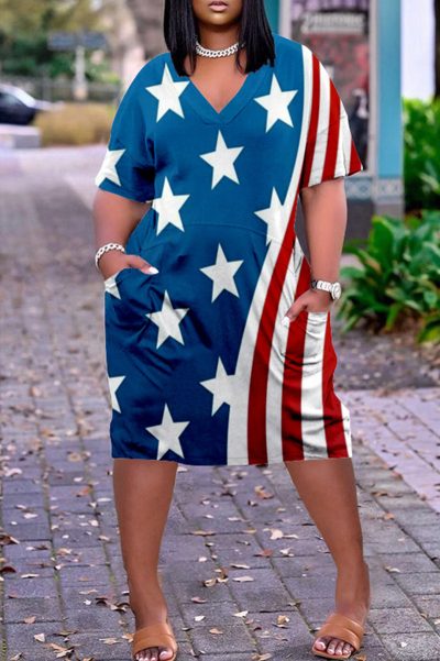 - Product Name: Fashion Casual Print Basic V Neck Short Sleeve Dress Dresses