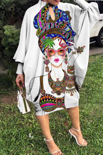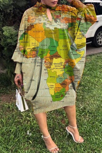 Material Polyester Style Fashion,Casual Pattern Type Print Element Hollowed Out Neckline Half A Turtleneck Silhouette Long Sleeve Sleeve Style Batwing Sleeve Sleeve Length Long Sleeve Dresses Length Mid Calf Fit Type Loose Type Positioning Print inchcmSize(in) Bust Dresses Length Sleeve Length S 87.4 40.9 28.7 M 89.8 41.3 29.4 L 92.1 41.7 30 XL 94.5 42.1 30.6 2XL 96.9 42.5 31.3 3XL 99.2 42.9 31.9 4XL 102.4 43.3 32.6 5XL 105.5 43.7 33.3 Size(cm) Bust Dresses Length Sleeve Length S 222 104 73 M 228 105 74.6 L 234 106 76.2 XL 240 107 77.8 2XL 246 108 79.4 3XL 252 109 81 4XL 260 110 82.8 5XL 268 111 84.6