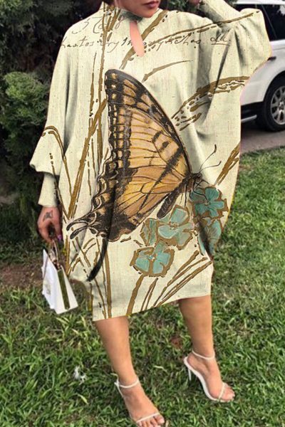 - Tag: Polyester , Fashion , Casual , Print , Batwing Sleeve , Long Sleeve , Mid Calf , Loose , Half A Turtleneck , Positioning Print , Hollowed Out