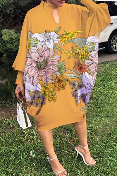 Material Polyester Style Fashion,Casual Pattern Type Print Element Hollowed Out Neckline O Neck Silhouette Long Sleeve Sleeve Style Lantern Sleeve Sleeve Length Long Sleeve Dresses Length Mid Calf Fit Type Loose Type Positioning Print inchcmSize(in) Bust Dresses Length Sleeve Length S 87.4 40.9 28.7 M 89.8 41.3 29.4 L 92.1 41.7 30 XL 94.5 42.1 30.6 2XL 96.9 42.5 31.3 3XL 99.2 42.9 31.9 4XL 102.4 43.3 32.6 5XL 105.5 43.7 33.3 Size(cm) Bust Dresses Length Sleeve Length S 222 104 73 M 228 105 74.6 L 234 106 76.2 XL 240 107 77.8 2XL 246 108 79.4 3XL 252 109 81 4XL 260 110 82.8 5XL 268 111 84.6