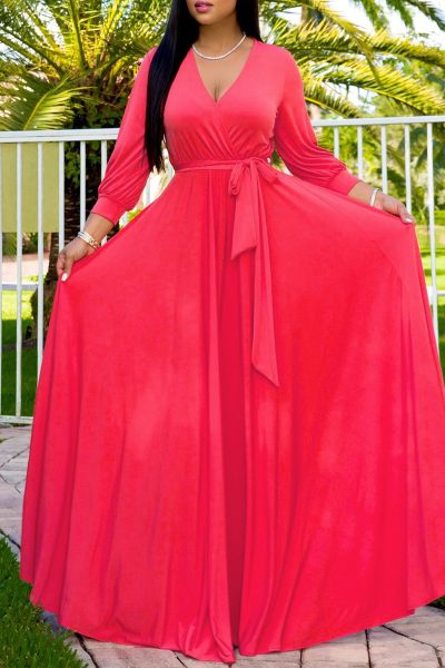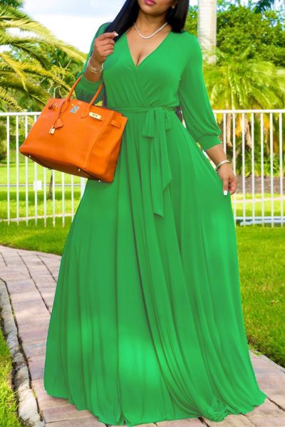 - Tag: Polyester , Fashion , Casual , Solid , Long Sleeve , Regular , Solid Color , Regular Sleeve , Floor Length , V Neck , Bandage