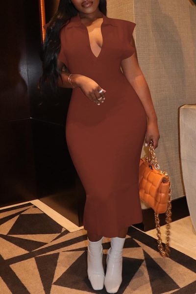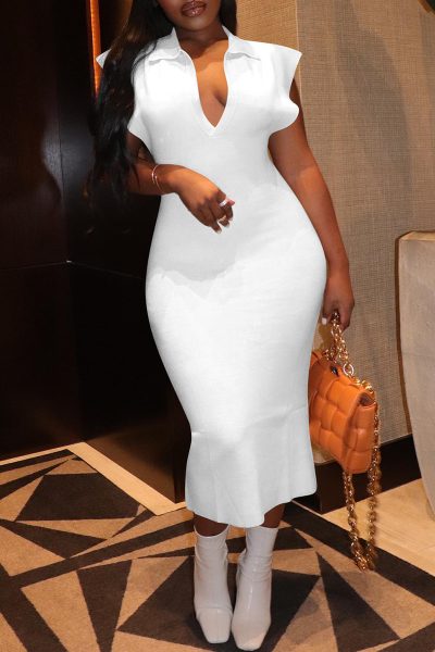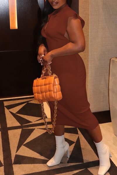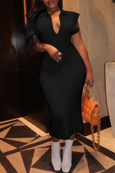 - Product Name: Fashion Casual Solid Basic Turndown Collar Sleeveless Dress