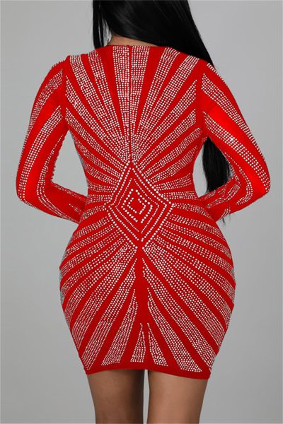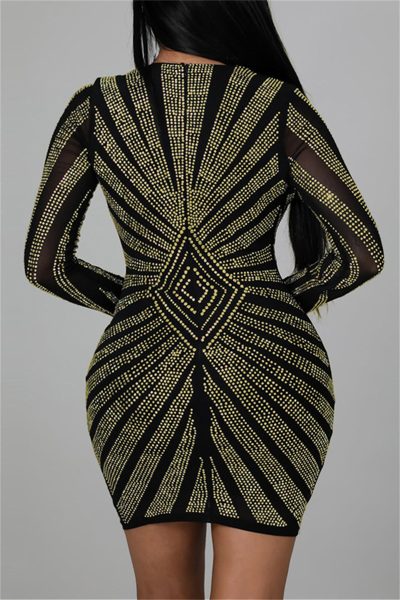 - Product Name: Fashion Sexy Patchwork Hot Drill V Neck Long Sleeve Dresses