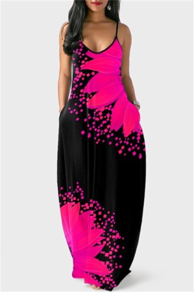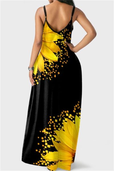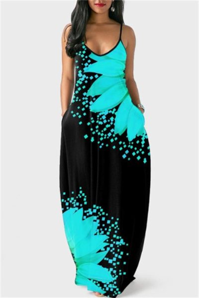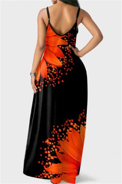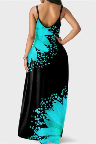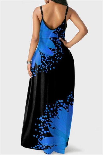 - Product Name: Fashion Sexy Print Backless Spaghetti Strap Long Dress