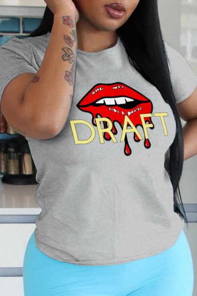 - Tag: Fashion , Split Joint , O Neck , Short Sleeve , Regular , Positioning Print , Pullover , Cotton , Small Elastic , Letter , Street , Lips Printed