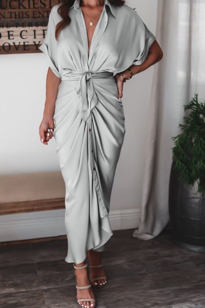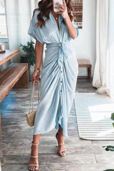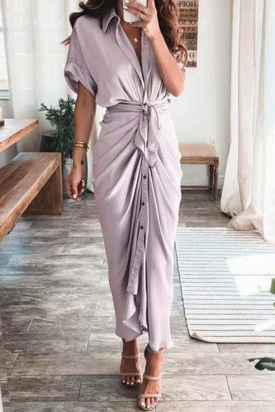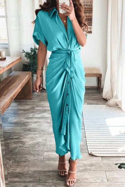 - Tag: Polyester , Fashion , Solid , Short Sleeve , Patchwork , Turndown Collar , A Line , Street , Ankle Length