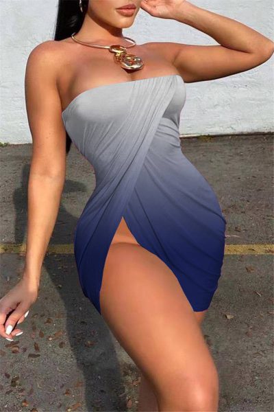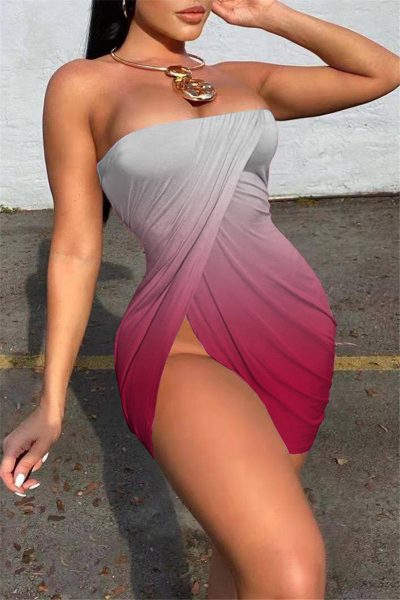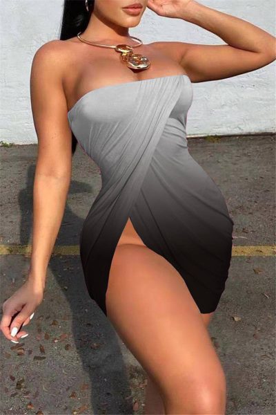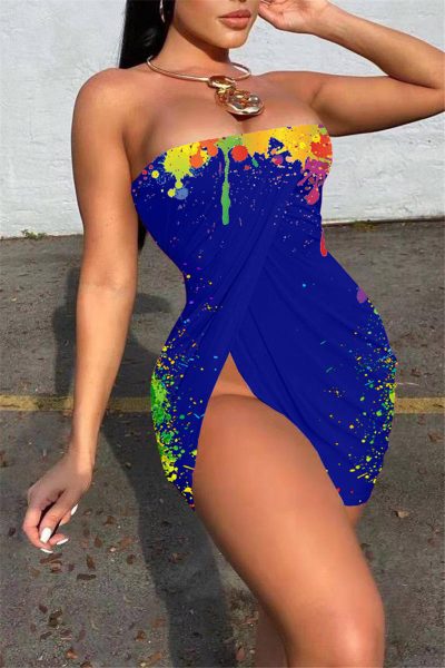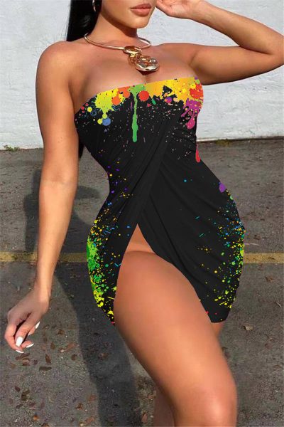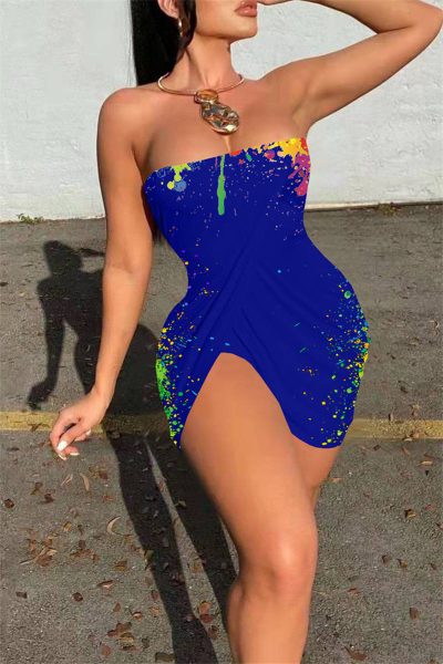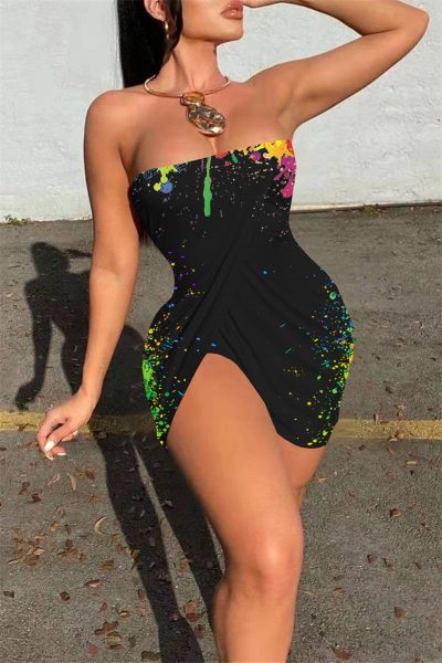 - Product Name: Sexy Print Backless Asymmetrical Strapless Sleeveless Dress