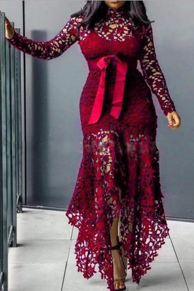 - Tag: Polyester , O Neck , Solid , Long Sleeve , Sexy , Solid Color , Skinny , Ankle Length , Lace , Irregular Dress