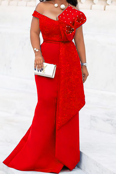 - Product Name: Sexy Solid Pearl V Neck Evening Dress Dresses