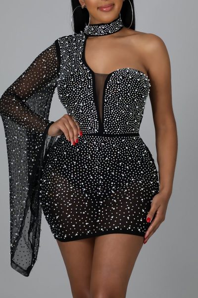 Material Polyester Style Sexy Pattern Type Solid Element Split Joint,Asymmetrical,Hot Drill Neckline Half A Turtleneck Silhouette Pencil Skirt Sleeve Style Single Sleeve Sleeve Length Long Sleeve Dresses Length Mini Fit Type Regular Clothing Length Short Type Patchwork inchcmSize(in) Bust Waist Hips Dresses Length Sleeve Length S 29.1 22.4 33.1 31.9 24.8 M 30.7 24 34.6 32.3 25.2 L 32.3 25.6 36.2 32.7 25.2 XL 33.9 27.2 37.8 33.1 25.6 2XL 35.4 29.5 40.2 33.5 25.6 3XL 38.6 31.9 42.5 33.9 26 Size(cm) Bust Waist Hips Dresses Length Sleeve Length S 74 57 84 81 63 M 78 61 88 82 64 L 82 65 92 83 64 XL 86 69 96 84 65 2XL 90 75 102 85 65 3XL 98 81 108 86 66
