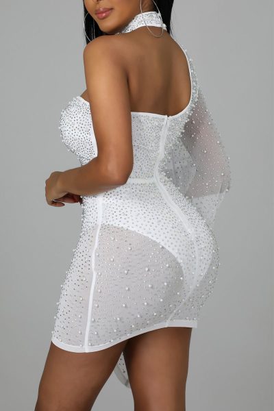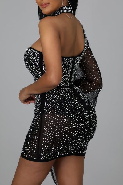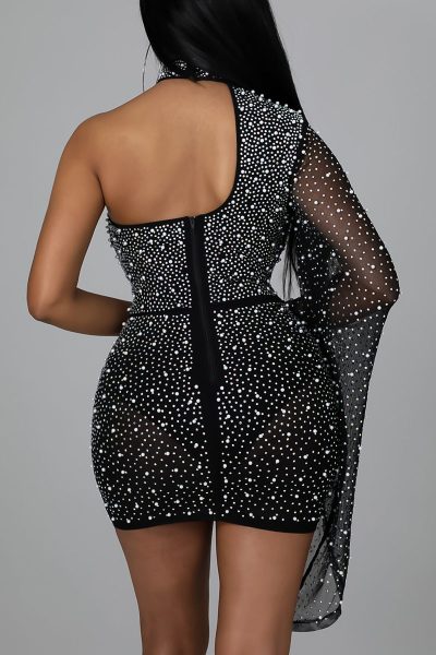 - Product Name: Sexy Solid Split Joint Asymmetrical Hot Drill Half A Turtleneck Pencil Skirt Dresses
