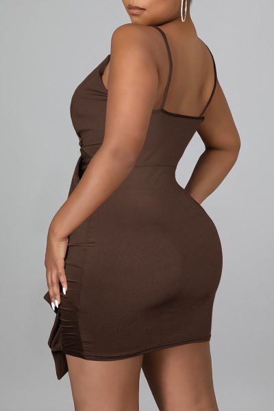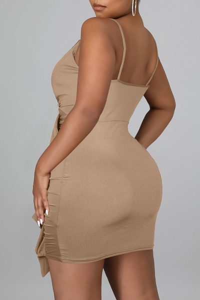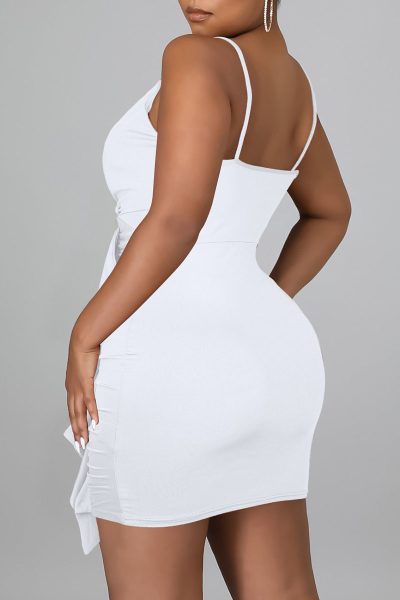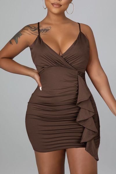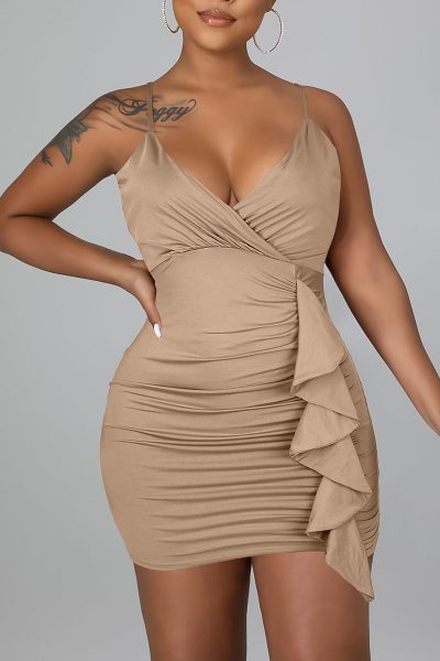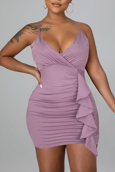 - Product Name: Sexy Solid Split Joint Flounce Spaghetti Strap Sling Dress Dresses