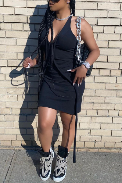 Sexy Solid Split Joint Halter Pencil Skirt Dresses
