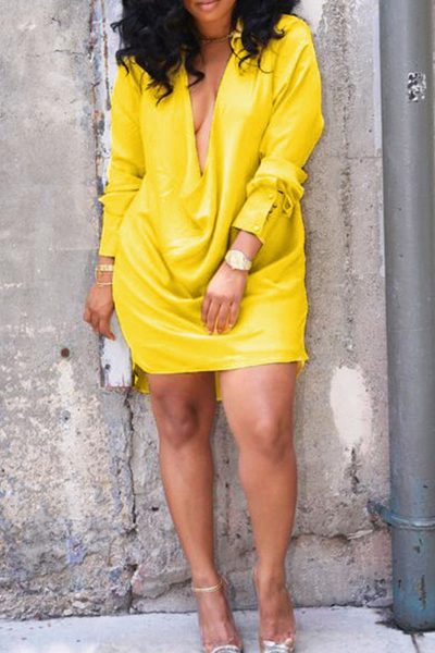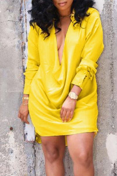 - Tag: Polyester , Split Joint , Solid , Straight , Long Sleeve , Sexy , Solid Color , Mini , V Neck , Shirt-Sleeve