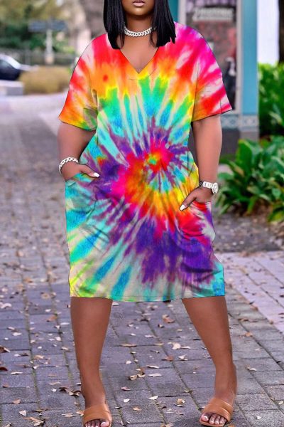 Fashion Casual Print Leopard Basic V Neck Short Sleeve Dress